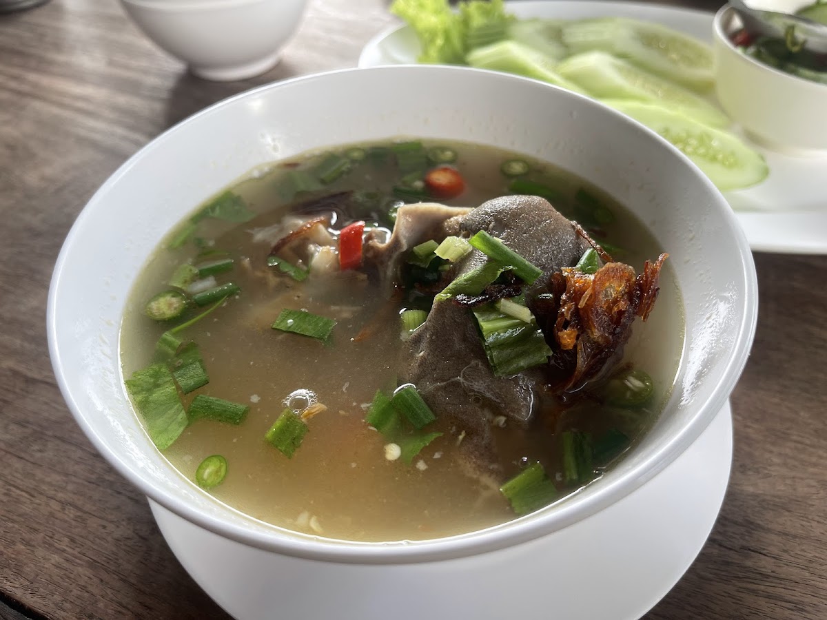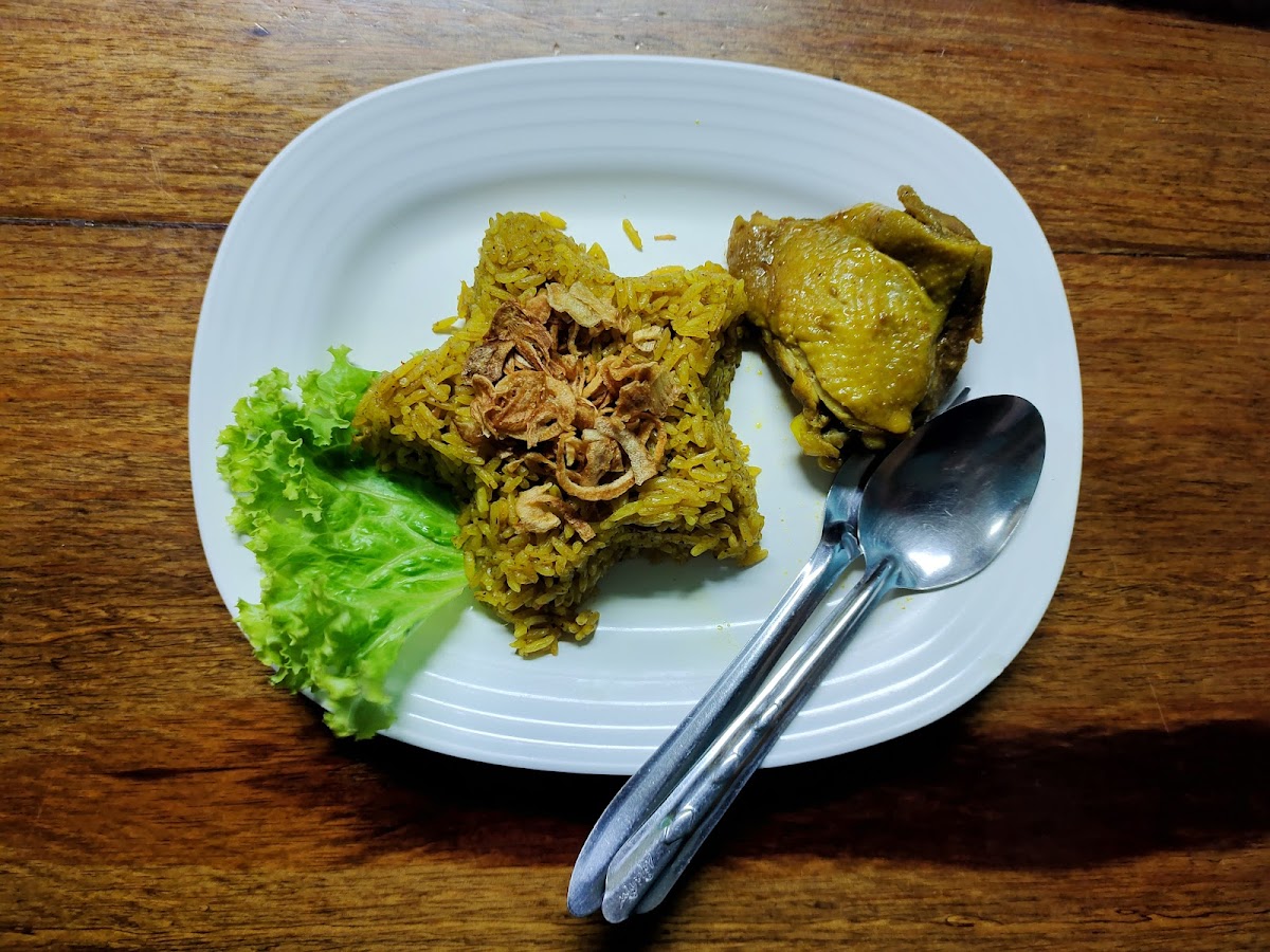 Best meal I had in changwat Krabi. Busy around noon but got a table without waiting. Goat curry was peppery with a spice blend very different from other Muslim curries I’ve had. Slightly sweet with tender bone-in meat. Biryani was equally well flavored and the dry stewed goat meat was perhaps even more satisfying than the meat suffused with curry. Fresh cucumber, slightly sweet vinegar cucumber salad, and chicken broth with perfectly cooked cucumber were a lovely companion, along with a cup of fresh goat’s milk. Friendly staff, stellar food